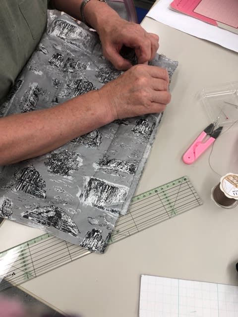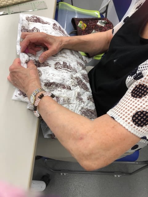 トートバッグのキルティングが終わり、仕立てをしています。 パッチワーク講習会は9月末から2カ月ほどお休みになります。 会場であるセンターが、水回り工事などの大掛かりなリフォームを行うそうで、使用できないからです。 11月末まで秋休みになります。